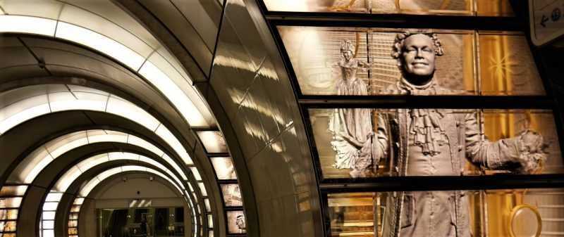 Внутри московского метрополитена можно увидеть уникальные дизайнерские решения — витражи и мозаику, барельефы и росписи, бюсты известных людей и фигуры животных.