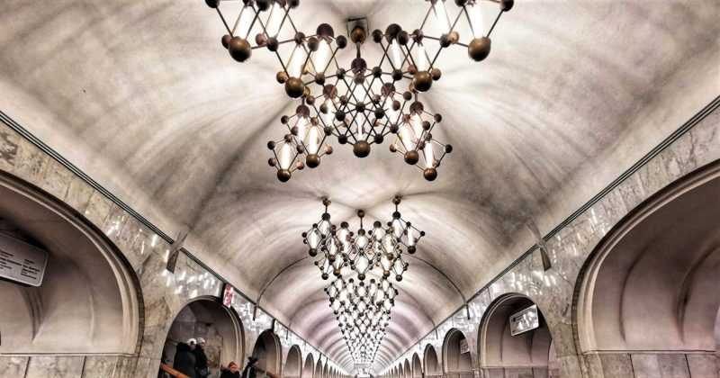 /ст. Менделеевская, люстры стилизованы под атомы, связанные в молекулы/